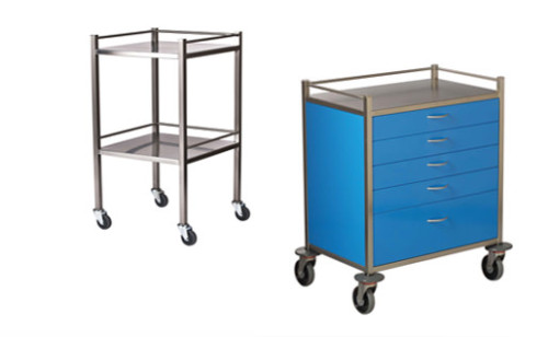 - Hospital trolleys for instruments, resuscitation, IV systems set-up, laundry and linen, garments, trays and more