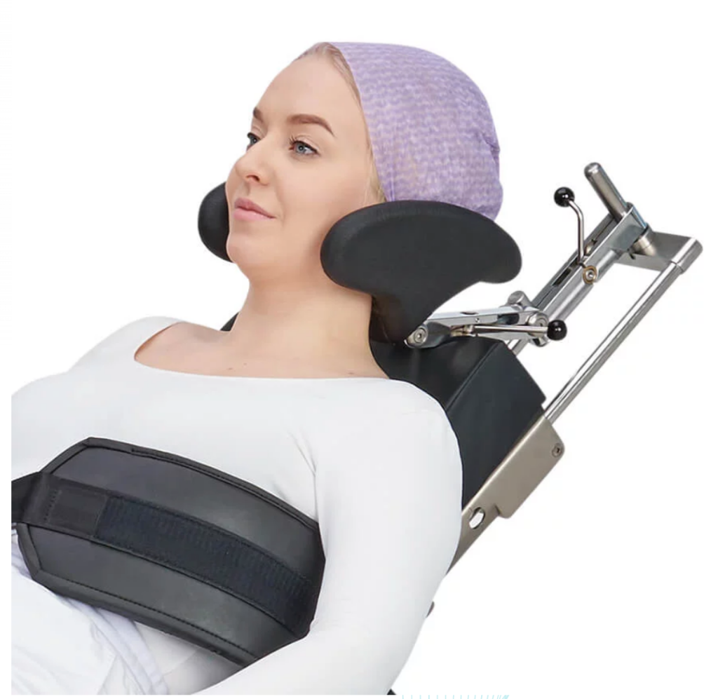 Special multi directional head rest for shoulder and upper arm procedures. For Beach Chair back rest for shoulder and upper arm procedures. Unique sliding function with double joint mechanism, very wide adjustments in all directions.
