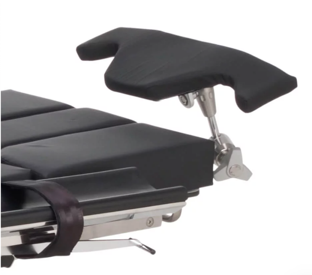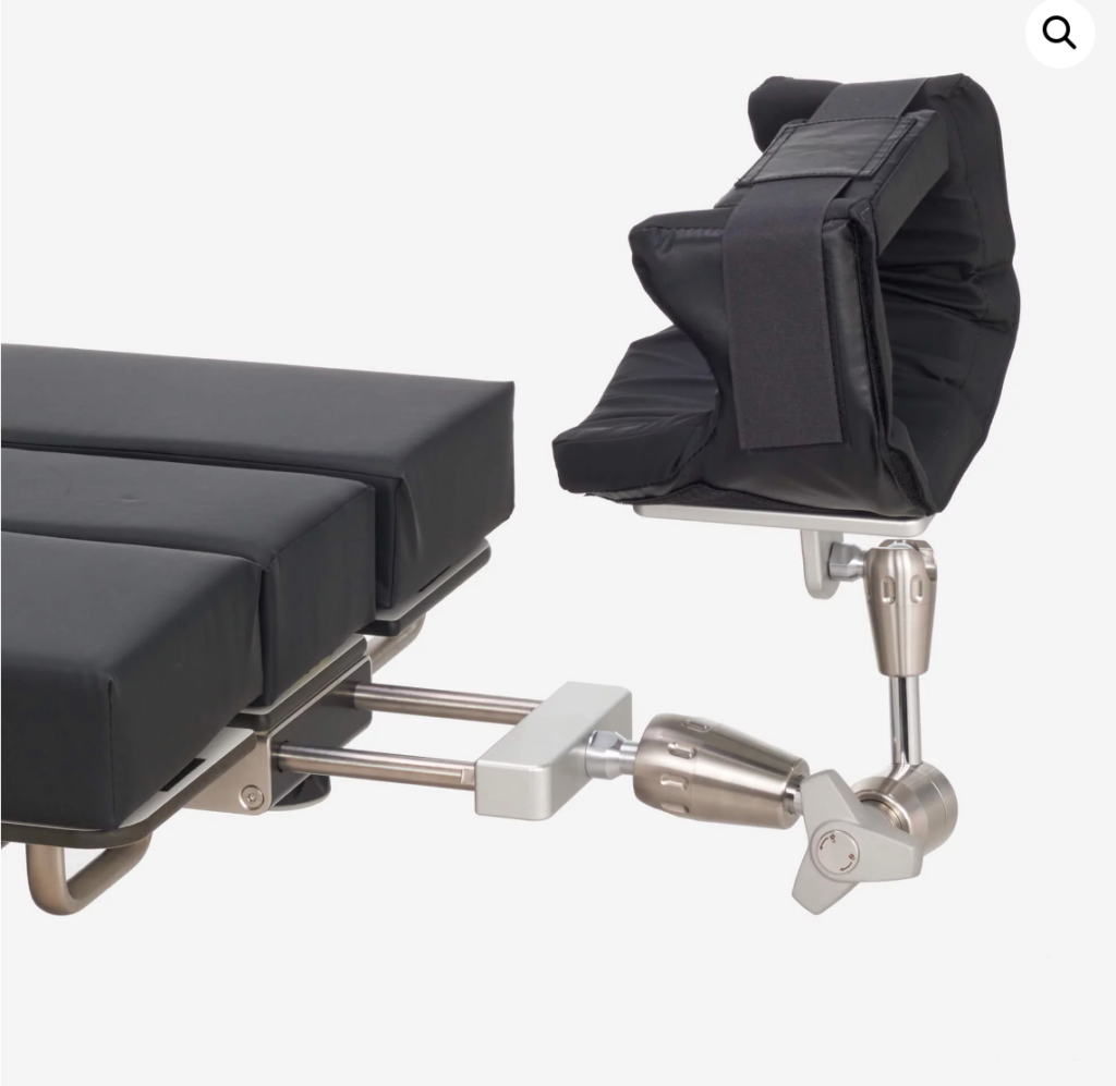 Helmet type head rest 30130 for shoulder and upper arm procedures with “Beach Chair” back rest.