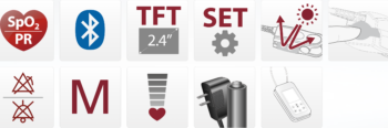 • Alarm function Device delivers audible warning when measurement result exceeds the Sp02/Pulse Rate thresholds previously set.