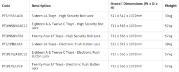 Trays supported on adjustable shelves, sizes (w x d x h)…